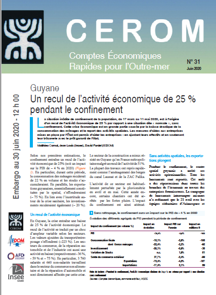 La situation inédite de confinement de la population, du 17 mars au 11 mai 2020, est à l’origine d’un recul de l’activité économique de 25 % par rapport à une situation dite « normale », sans confinement. Cette crise économique est en grande partie causée par la baisse drastique de la consommation des ménages et le report des activités spatiales. Les mesures d’aides aux entreprises mises en place par l’État ont permis d’aider les entreprises : en ajustant leurs effectifs et en soutenant leur trésorerie avec le prêt garanti de l’état.