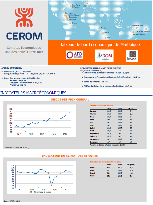 Tableau de bord économique de Martinique - 4e trimestre 2021