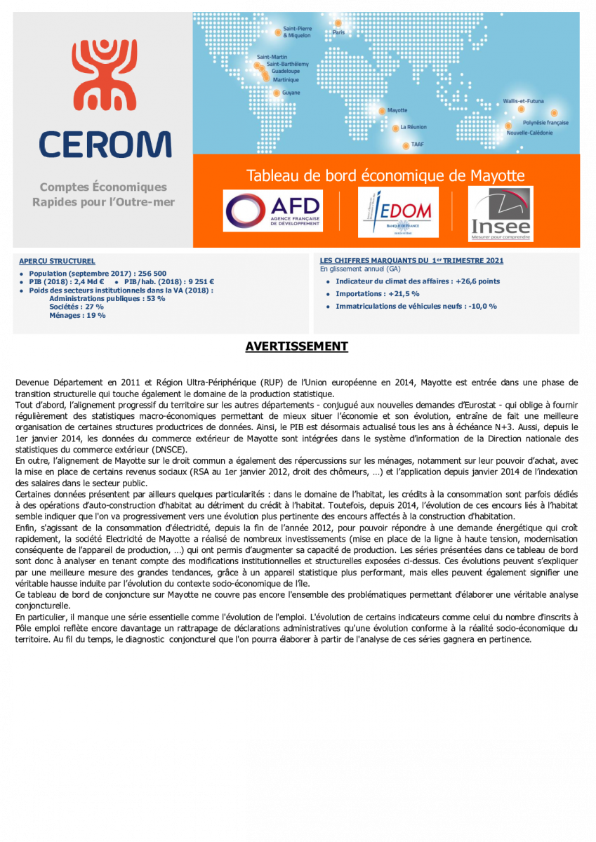 Tableau de bord CEROM - Mayotte - 1er trimestre 2021