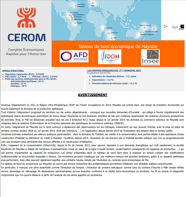 Tableau de bord CEROM - Mayotte - 2ème trimestre 2023