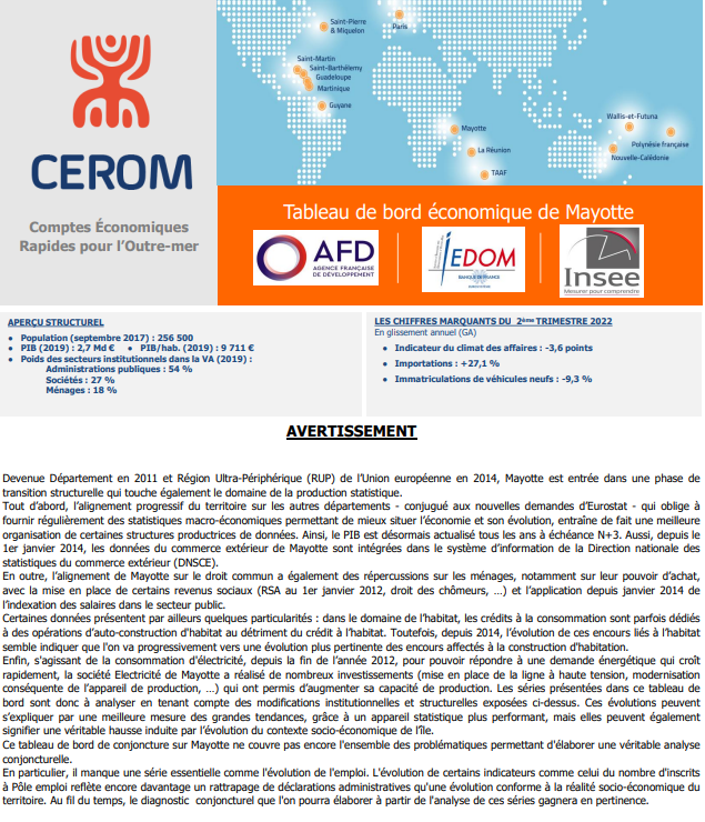 Tableau de bord CEROM - Mayotte - 2ème trimestre 2022