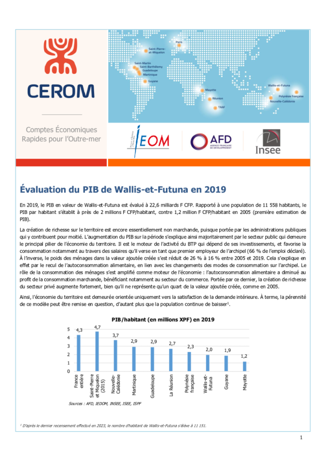 La création de richesse sur le territoire est encore essentiellement non marchande, puisque portée par les administrations publiques qui y contribuent pour moitié. L’augmentation du PIB sur la période s’explique ainsi majoritairement par le secteur public qui demeure le principal pilier de l’économie du territoire. Il est le moteur de l’activité du BTP qui dépend de ses investissements, et favorise la consommation notamment au travers des salaires qu’il verse en tant que premier employeur de l’archipel (66 % de l’emploi déclaré). À l’inverse, le poids des ménages dans la valeur ajoutée créée s’est réduit de 26 % à 16 % entre 2005 et 2019. Cela s’explique en effet par le recul de l’autoconsommation alimentaire, en lien avec les changements des modes de consommation sur l’archipel. Le rôle de la consommation des ménages s’est amplifié comme moteur de l’économie : l’autoconsommation alimentaire a diminué au profit de la consommation marchande, bénéficiant notamment au secteur du commerce. Portée par ce dernier, la création de richesse du secteur privé augmente fortement, bien qu’il ne représente qu’un quart de la valeur ajoutée créée, comme en 2005.