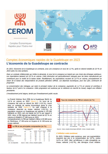 En 2023, l’économie de la Guadeloupe se contracte, avec une croissance en recul de 1,0 %, après le rebond notable de 5,9 % en 2022 suite à la crise sanitaire.