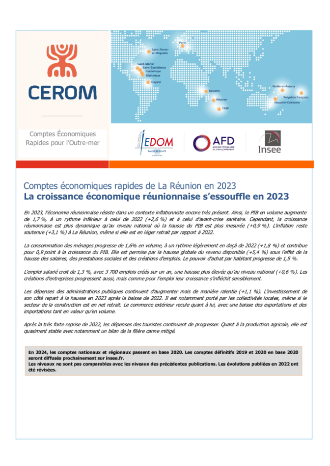 En 2023, l’économie réunionnaise résiste dans un contexte inflationniste encore très présent. Ainsi, le PIB en volume augmente