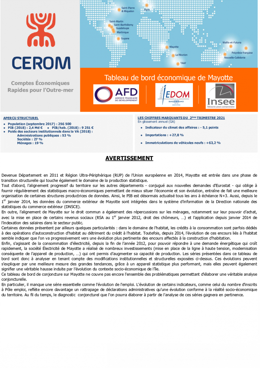Tableau de bord CEROM - Mayotte - 2ème trimestre 2021