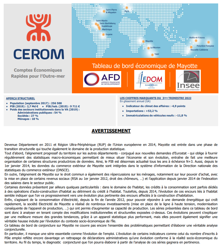 Tableau de bord CEROM - Mayotte - 3ème trimestre 2022