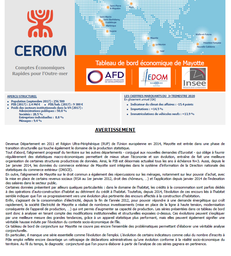 Tableau de bord CEROM - Mayotte - 3e trimestre 2020