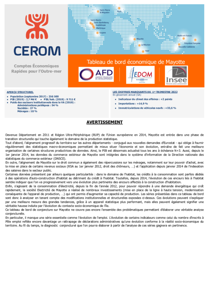 Tableau de bord CEROM - Mayotte - 1er trimestre 2022