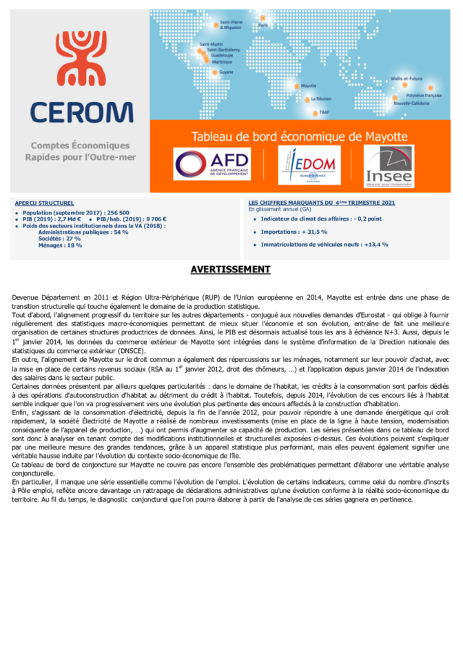 Tableau de bord CEROM - Mayotte - 4ème trimestre 2021