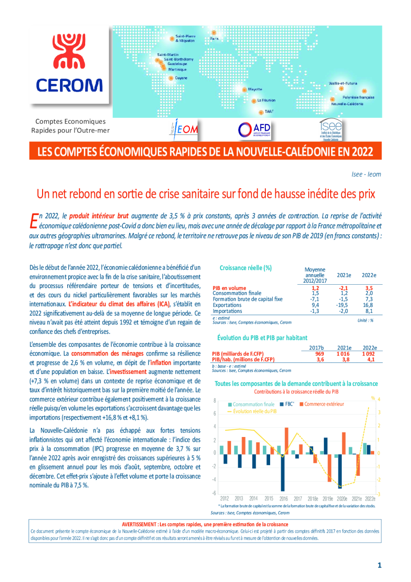 Les comptes économiques rapides de la Nouvelle-Calédonie en 2022