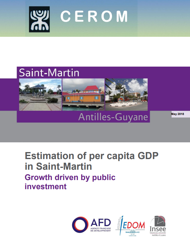 Le PIB de Saint-Martin est estimé à 582 millions d’euros en 2014, contre 557 millions en 2011. Cette croissance est principalement portée par la progression des dépenses des administrations publiques (+4 % en moyenne annuelle). Le PIB par habitant s’élève ainsi à 16 572 € en 2014, contre 15 362 € en 2011, soit une croissance annuelle moyenne de 2,6 %. Cette progression sur la période est à la fois liée à la hausse du PIB et à la diminution de la population saint-martinoise, un mouvement observé depuis la fin des années 2000, avec un solde migratoire négatif non compensé par le solde naturel positif.